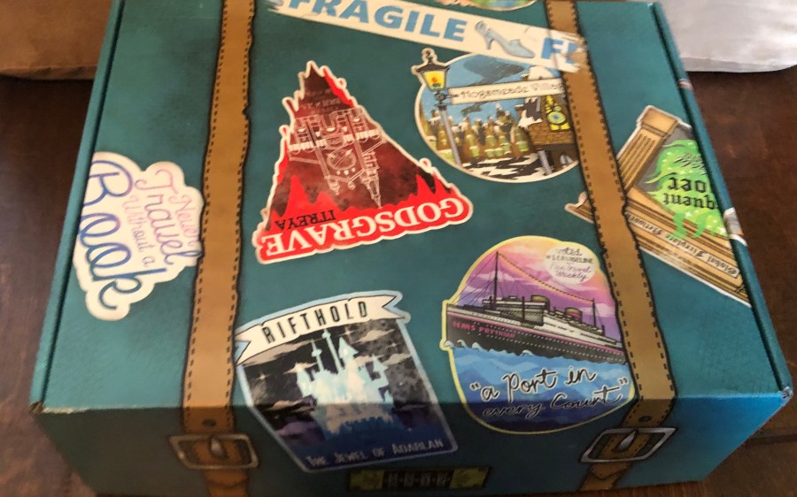 The bookish goodies for the box where very well done and included a “passport” spoiler card, a gorgeous tapestry blanket, collectible chess pieces of Mia and Tric, a GodsGrave sticker, an enamel pin, tarot cards featuring eleven different characters, a booksleave, a coffee mug, a cat shaped spoon inspired by Mister Kindly, Mia bookends, a sleep mask, a decorative pillow case, a bookmark, and a bath crumble that turns the water red.