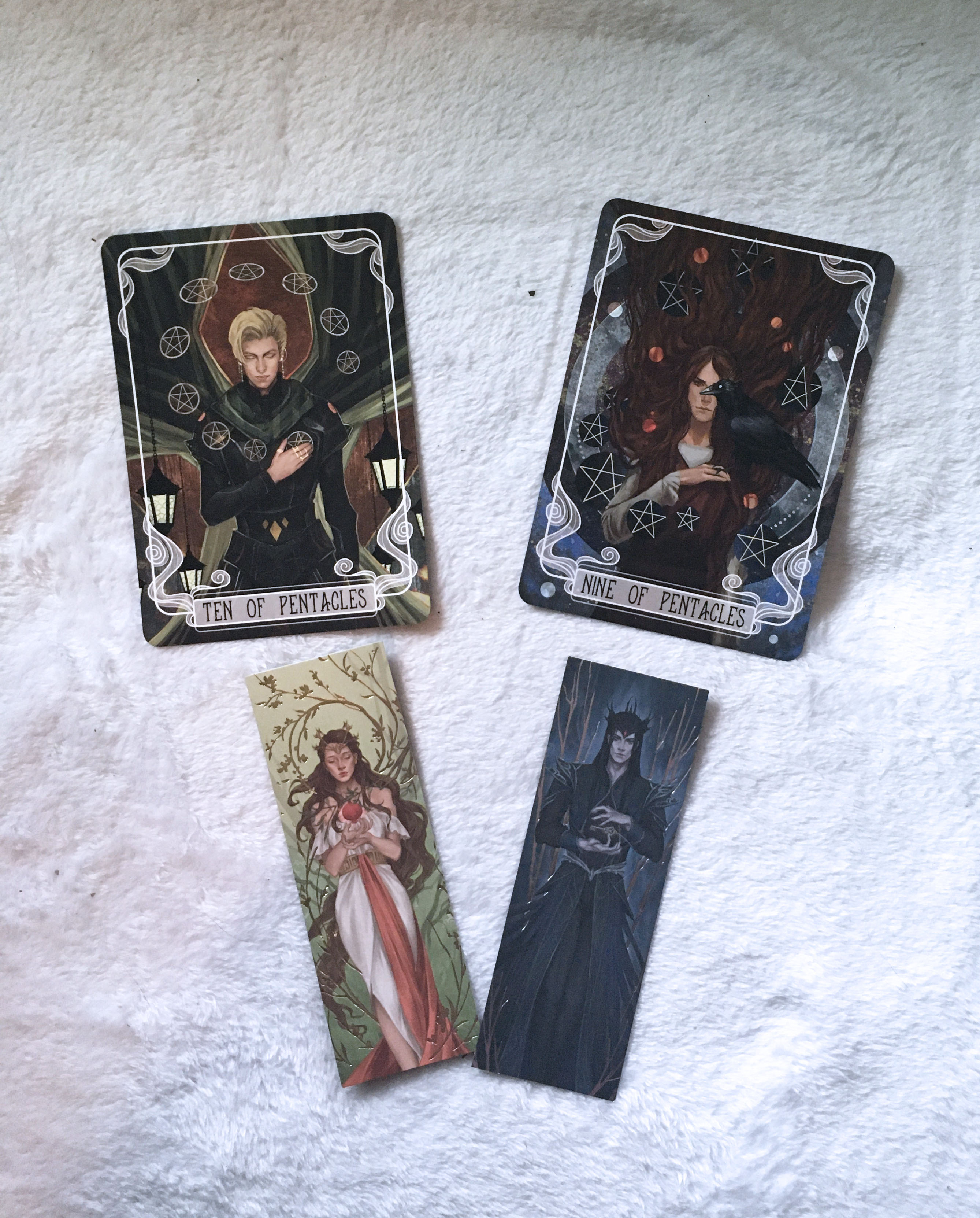 The bookish items included this month are a sword letter opener, an iron on patch from We Hunt the Flame, a set of mythology foil bookmarks, a These Violent Delights book sleeve, and the Poppy War enamel pin that was missing in the November box. The monthly tarot cards are inspired by Red Rising.