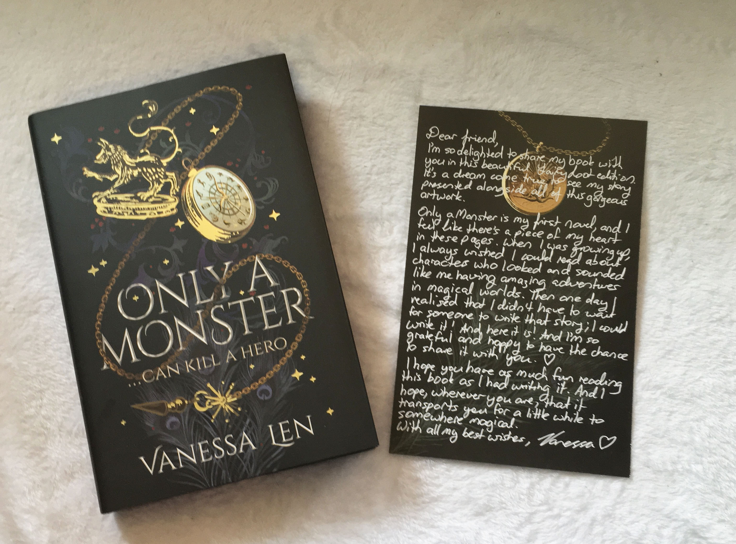 All Fairyloot books come with exclusive covers, signed by the author and include a letter from the author. This month the book is Only a Monster by Vanessa Len which also has stencil sprayed edges, art on the endpapers, and foiling on the hardback. This is a fantasy story set in London with monsters, hidden powers, and romance where the main character might not be the hero of this story.