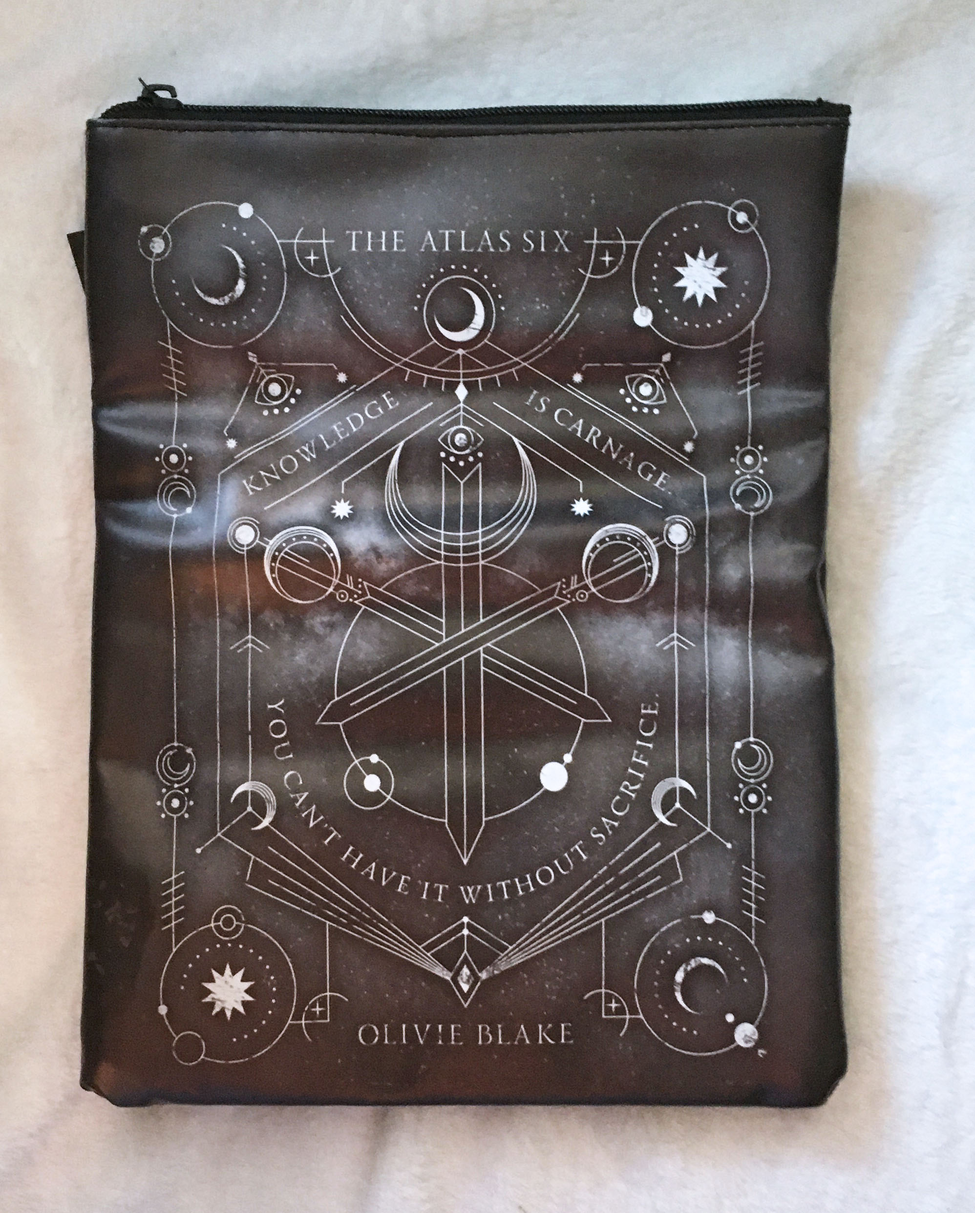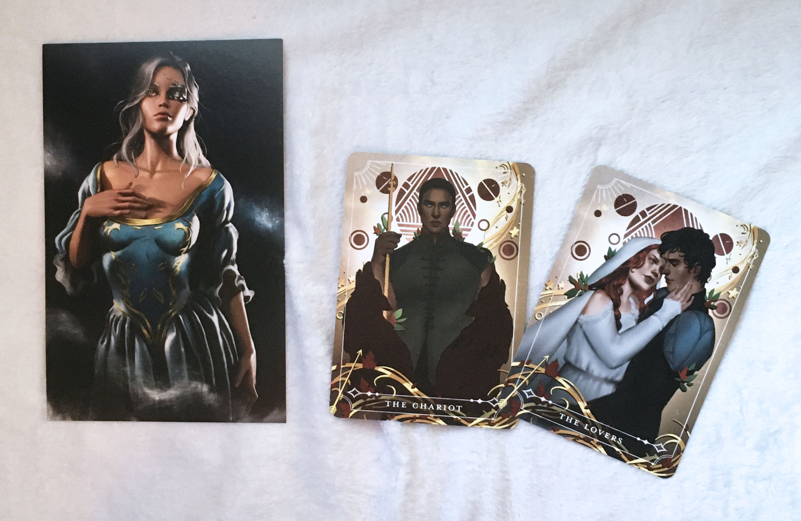 The bookish items included this month are a Poppy War inspired trinket dish, The Atlas Six book sleeve, a Young Elites art pint, paper tags inspired by Sting from Lord of the Rings, and the monthly tarot cards inspired by From Blood and Ash.