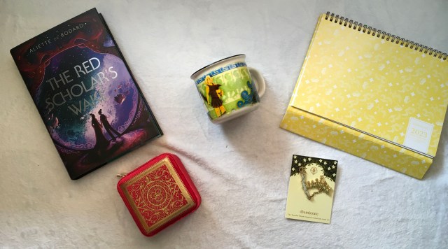 Illumicrate, like other book boxes, include a new hard cover each month and most months a letter from the author. This months book is The Red Scholar’s Wake by Aliette De Bodard. I have read some of Aliette De Bodard’s other works and loved them so I have a feeling that I will enjoy this book. The story follows Xich Si who is a scavenger whos ship has been captured by the Red Banner pirate fleet. Rice Fish the leader of the pirate fleet, who is a sentient ship, proposes an arranged marriage between Xich and herself as Rice Fish needs help who killed her wife, the Red Scholar. While an odd premise De Bodard’s work is generally well written and makes the characters easy to connect to. This edition of the book has an exclusive cover, sprayed edges, and foiling on the hardback.