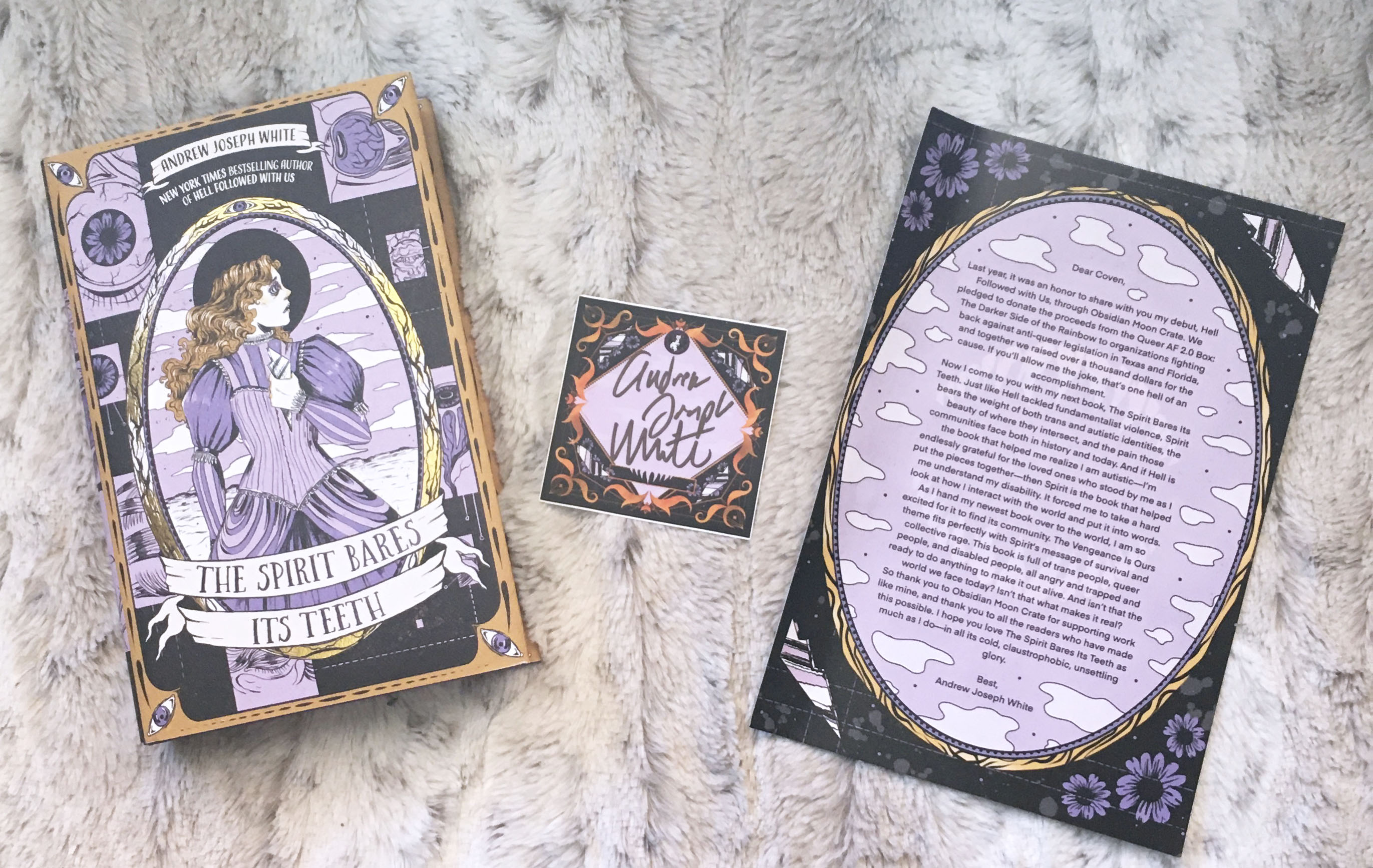The book included was a hardcover copy of The Spirit Bares Its Teeth by Andrew Joseph White. This edition also came with an author letter, a signed book plate, and stenciled edges. Theis book is a historical fantasy/horror novel following Silas who is a medium who communes with spirits. After failing to escape an arranged marriage he is sent to a finishing school where the ghost to missing students start asking for help. I have also heard that you should look up trigger warnings before reading this book.